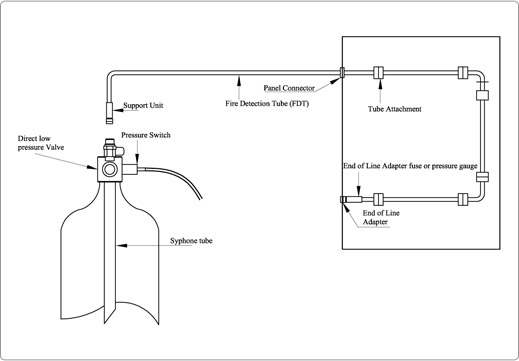 - The Direct System uses the Heat Sensing Tube for both fire detection and agent discharge.